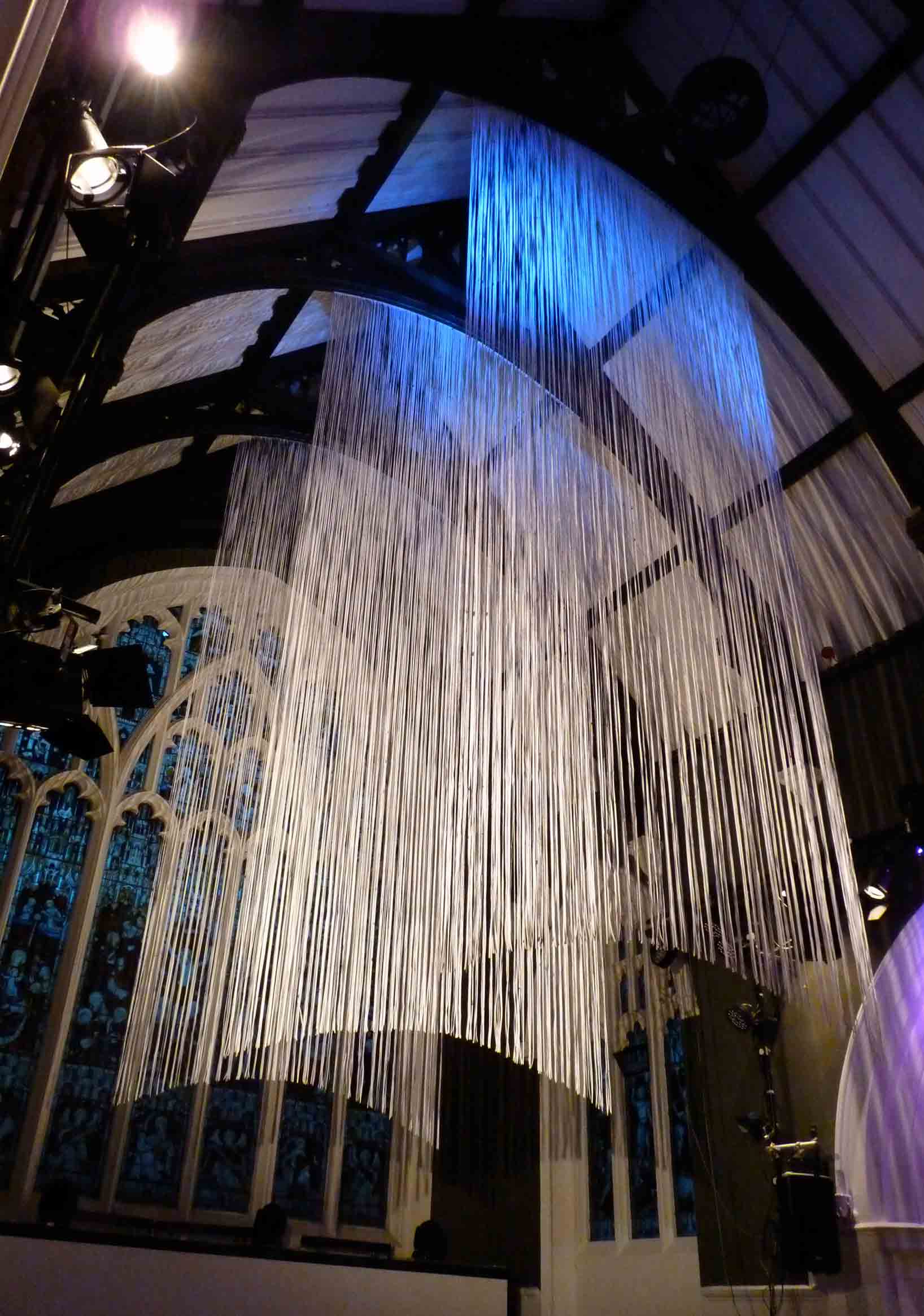 3 kilometres of shredded waste paper. Stainless steel rod.
